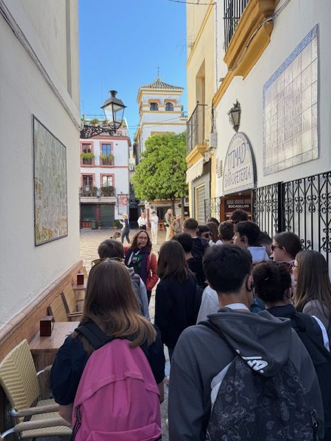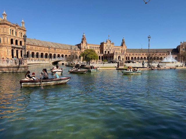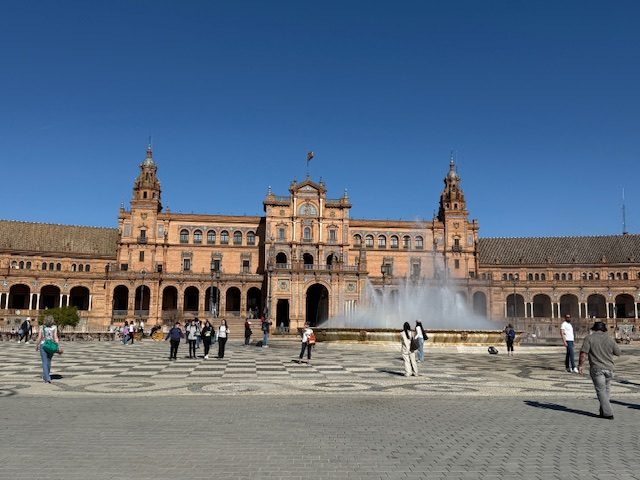 Soleil au rdv ! Découverte de la Plaza de España et du Parc Maria Luisa. Les jeunes sont en forme. Petit rallye dans le Parc à la découverte de Séville et des Sevillans.